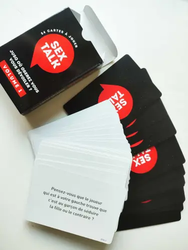 Il est parfois difficile d’aborder certains sujets intimes avec ses ami(e)s ou son/sa partenaire. Ce jeu propose une solution simple et amusante : une boîte contenant 54 questions variées et surprenantes pour parler librement de désirs, fantasmes et expériences.